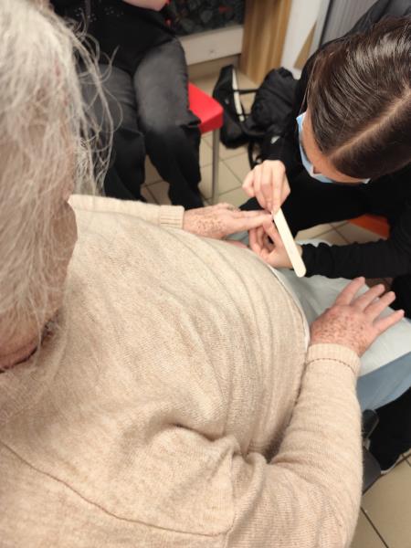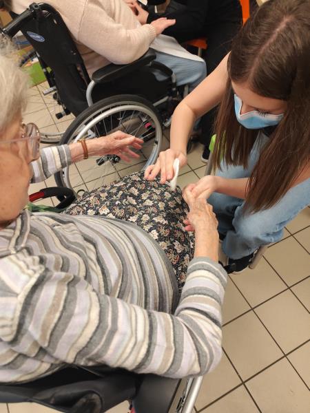 Venue proposer une beauté des mains aux résidentes. Les retrouvailles étaient très sympathiques, les résidentes ont beaucoup appréciés.