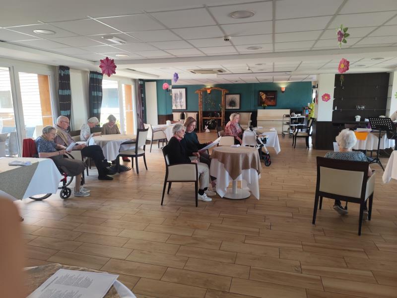 Les Terrasses de Granvelle > Actualités > Chants Chants Publiée le 27/04/2026 Cet après-midi nous avons chanté avec Laurence à la guitare.