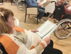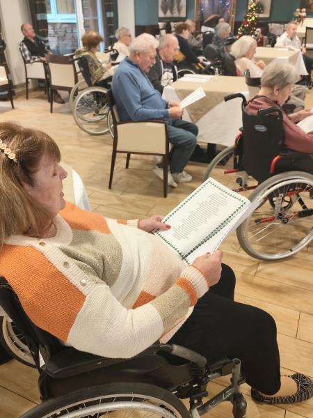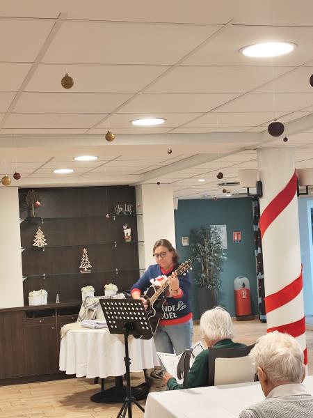 Hier après-midi, Laurence Bagnis, accompagnée de sa guitare est venue nous faire chanter, notamment des chants de Noël.